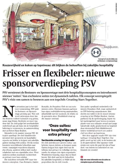 We zijn blij met de opdracht om de komende maanden zowel de 3e etage als de kleed- kantoorruimtes van het Philips Stadion te mogen voorzien van een nieuwe inrichting voor de landskampioen!